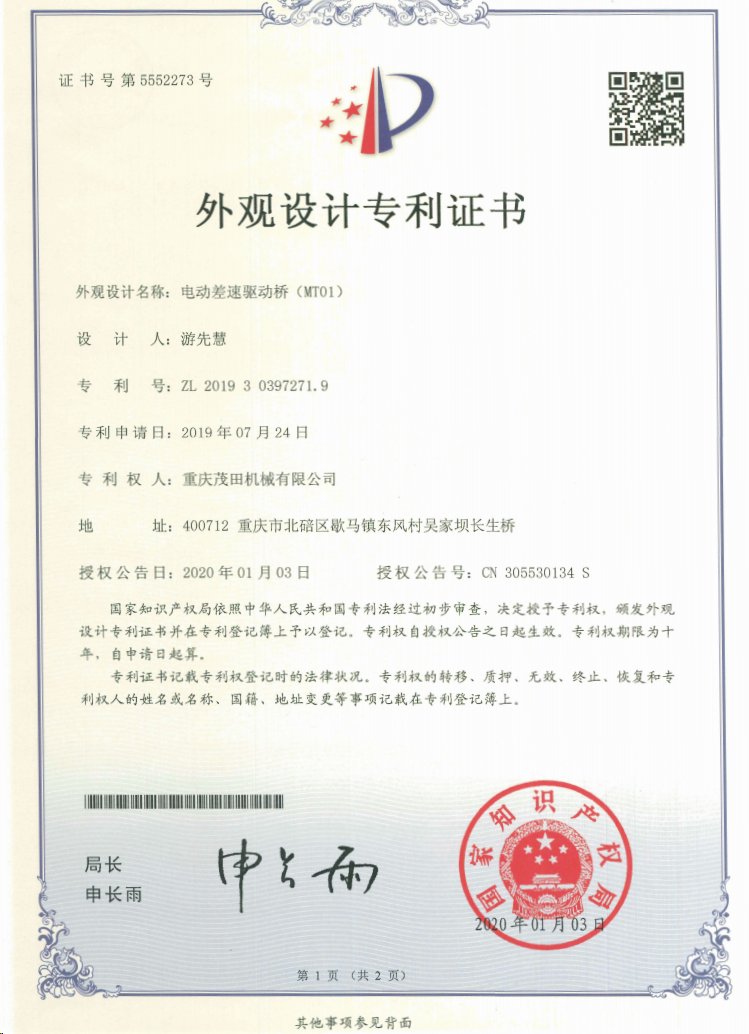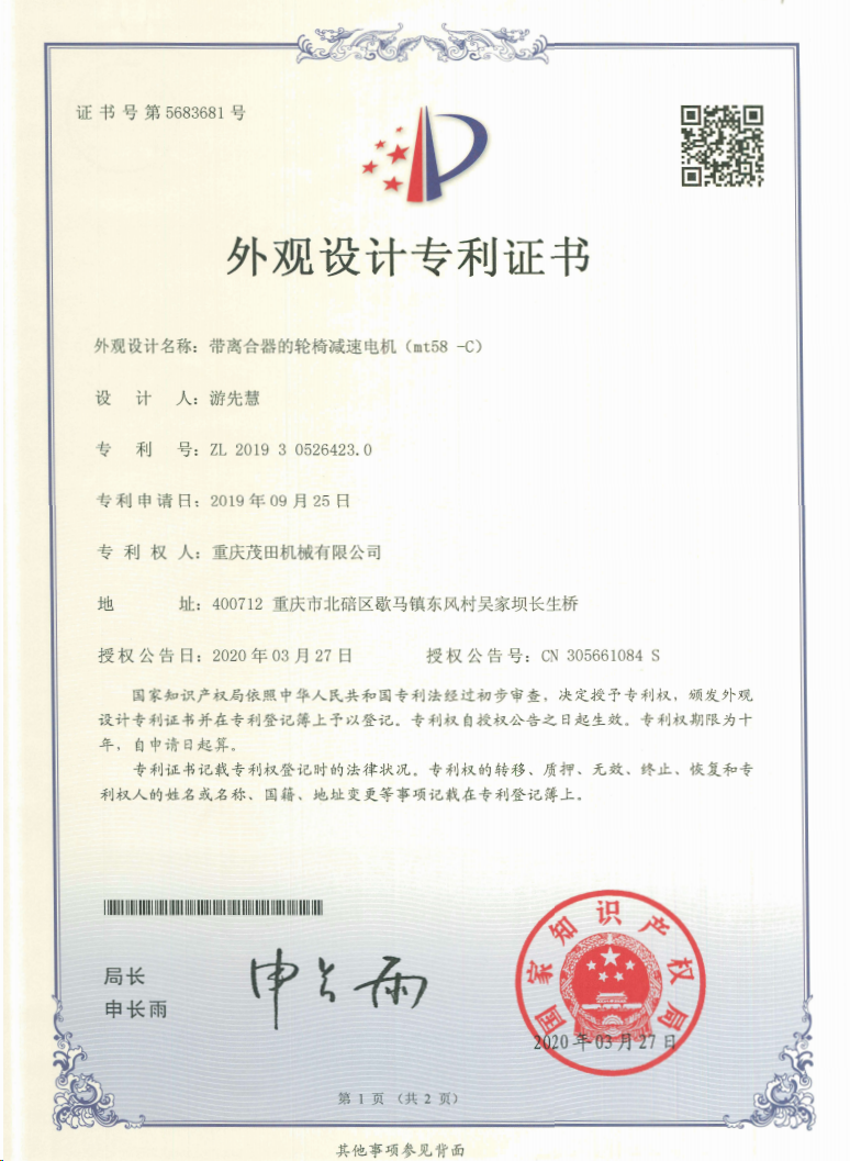 重慶茂田機(jī)械有限公司是國家級小巨人企業(yè)、國家高新技術(shù)企業(yè)、重慶市專精特新企業(yè)、重慶市知識產(chǎn)權(quán)優(yōu)勢企業(yè),致力于現(xiàn)代化山地農(nóng)業(yè)機(jī)械、各類非標(biāo)減速電機(jī)及其控制系統(tǒng)的研發(fā)、生產(chǎn)、銷售。擁有重慶市市級研發(fā)平臺1個 目前研發(fā)、生產(chǎn)、銷售產(chǎn)品廣泛應(yīng)用于農(nóng)業(yè)機(jī)械、醫(yī)療康復(fù)設(shè)備、交通代步工具、智能搬運(yùn)設(shè)備、以及機(jī)器人動力系統(tǒng)等領(lǐng)域。我們的產(chǎn)品具有完整的自主知識產(chǎn)權(quán),擁有多項(xiàng)專利技術(shù)及“重慶